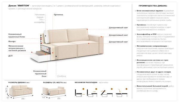 Диван Милтон (Империал) продается в интернет-магазине v-orenburge-mebel.ru по цене 60 770 руб. Есть доставка по Оренбургу и Оренбургской области. Возможность подъема на этаж и сборки уточняйте у менеджера по телефону 8(800)505-27-11.